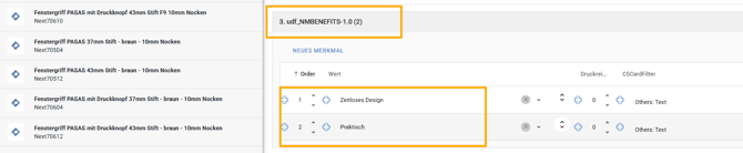 Ähnlich wie beim Merkmalssystem udf_NMTOPFEATURES-1.0 können Sie die charakteristischen Besonderheiten des Vorteils-Systems dazu verwenden, die Produktvorteile in Ihrem Webshop strategisch besser hervorzuheben .
