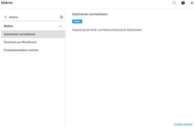 Um die Groß - und Kleinschreibung in einem Katalog zu harmonisieren, gibt es das Makro "Dateinamen normalisieren". Das Makro orientiert sich dabei an der ursprünglichen Referenz des Mediums, zu finden auf der Katalogebene unter "Alle Medien".