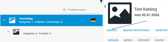 Falls Sie unsicher sind oder bereits festgestellt haben, dass Ihr Katalog Produkte mit nicht eindeutigen Herstellerartikelnummern enthält, öffnen Sie auf der Katalogebene den Reiter "Makros".