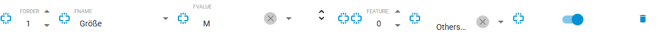 Die Merkmale werden anhand der Kombination des Merkmalsnamen und der Einheit erkannt. Das Merkmal Länge [mm] wird als ein anderes Merkmal als Länge [m] betrachtet. Identische Merkmale werden als eines zusammengefasst. Wobei variierende Werte bei identischen Merkmalen dazu führen, dass der Wert solcher Merkmale im Masterartikel leer bleibt. Beispiel: