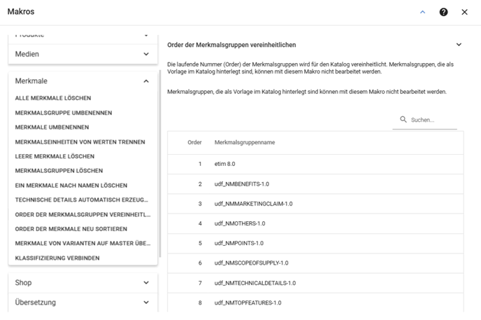 Dieses Makro vereinheitlicht die Reihenfolge der Merkmalsgruppen im gewählten Katalog.