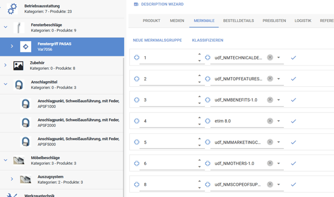 Für Produkte, an denen Merkmalsgruppen fehlen, erfolgt die Sortierung der vorhandenen Merkmalsgruppen entsprechend der festgelegten Reihenfolge.