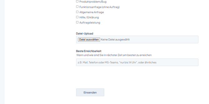 Nach Klick auf "Support kontaktieren" öffnet sich ein neues Fenster . Hier erhalten Sie die Möglichkeit, Ihre Support-Anfrage zu stellen.