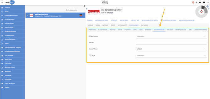 Die Electronic-Sales-Anbindung erfolgt katalogbasiert und wird direkt in den Katalogeinstellungen von nextPIM gesteuert.