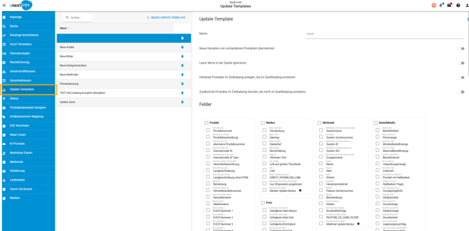 Update-Templates in nextPIM ermöglichen es, bestehende Daten gezielt zu aktualisieren, ohne komplette Datensätze neu anzulegen. Sie werden eingesetzt, um Änderungen effizient, kontrolliert und nachvollziehbar in nextPIM zu übernehmen.