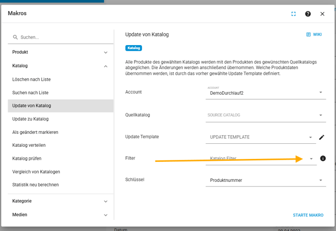 Falls ja, können diese direkt im Makro UPDATE VON KATALOG angelegt oder bearbeitet werden.