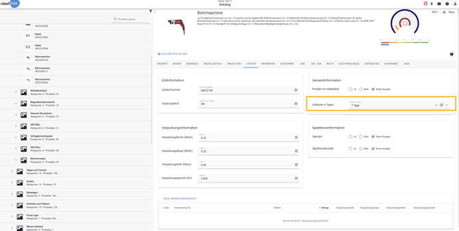 Anlegen von Lieferzeiten in nextPIM & Shopware